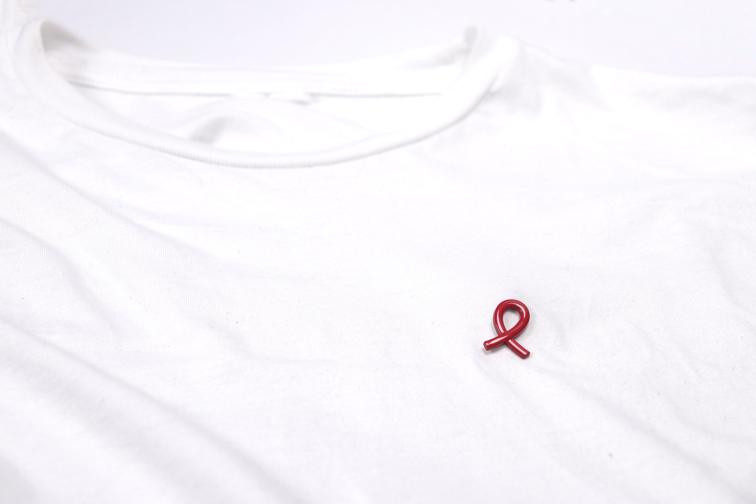 Symbole de la lutte contre le sida, le ruban rouge est en métal. Un produit sobre et élégant.